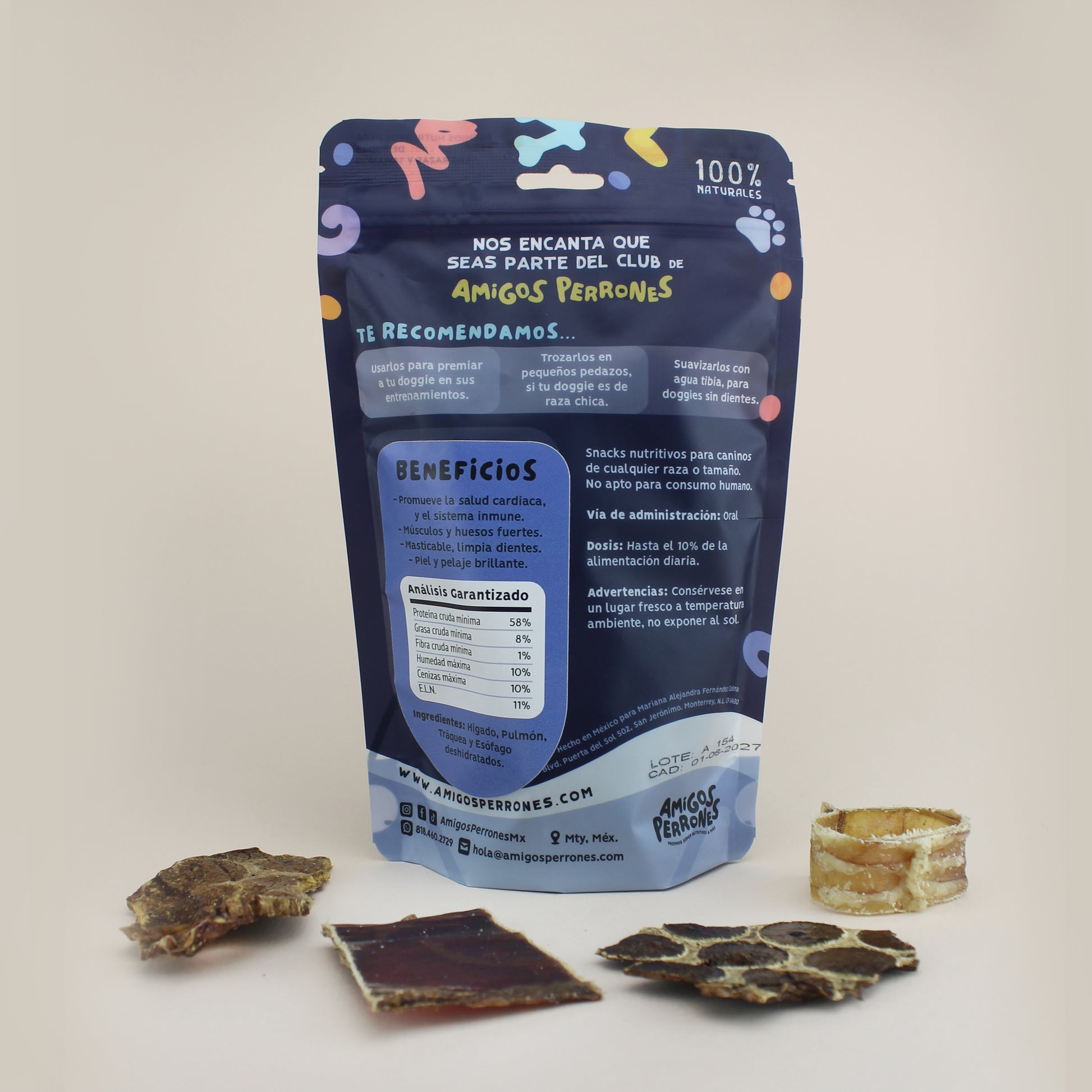 Mezclamos 4 de nuestros treats estrella 🌟: hígado, jerky, pulmón y tráquea, para que tu doggie obtenga un mix de nutrientes y sabor.